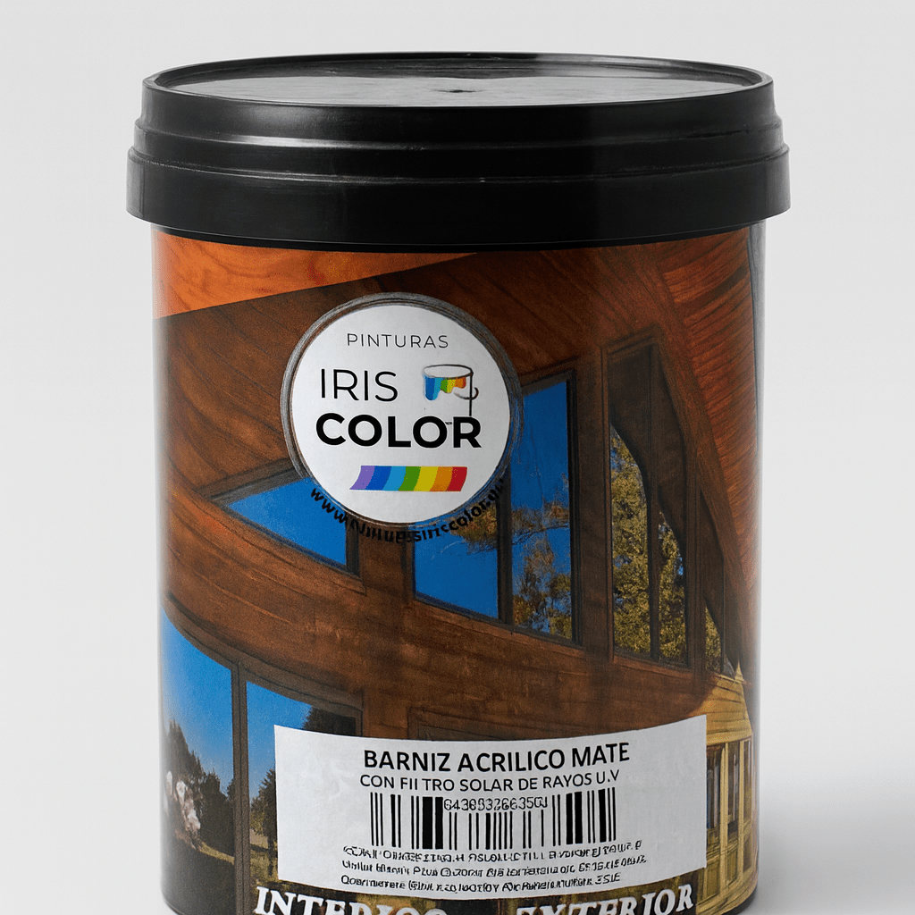 Barniz acrílico,al agua de secado rápido con filtro solar de rayos UV para proteger la madera.
