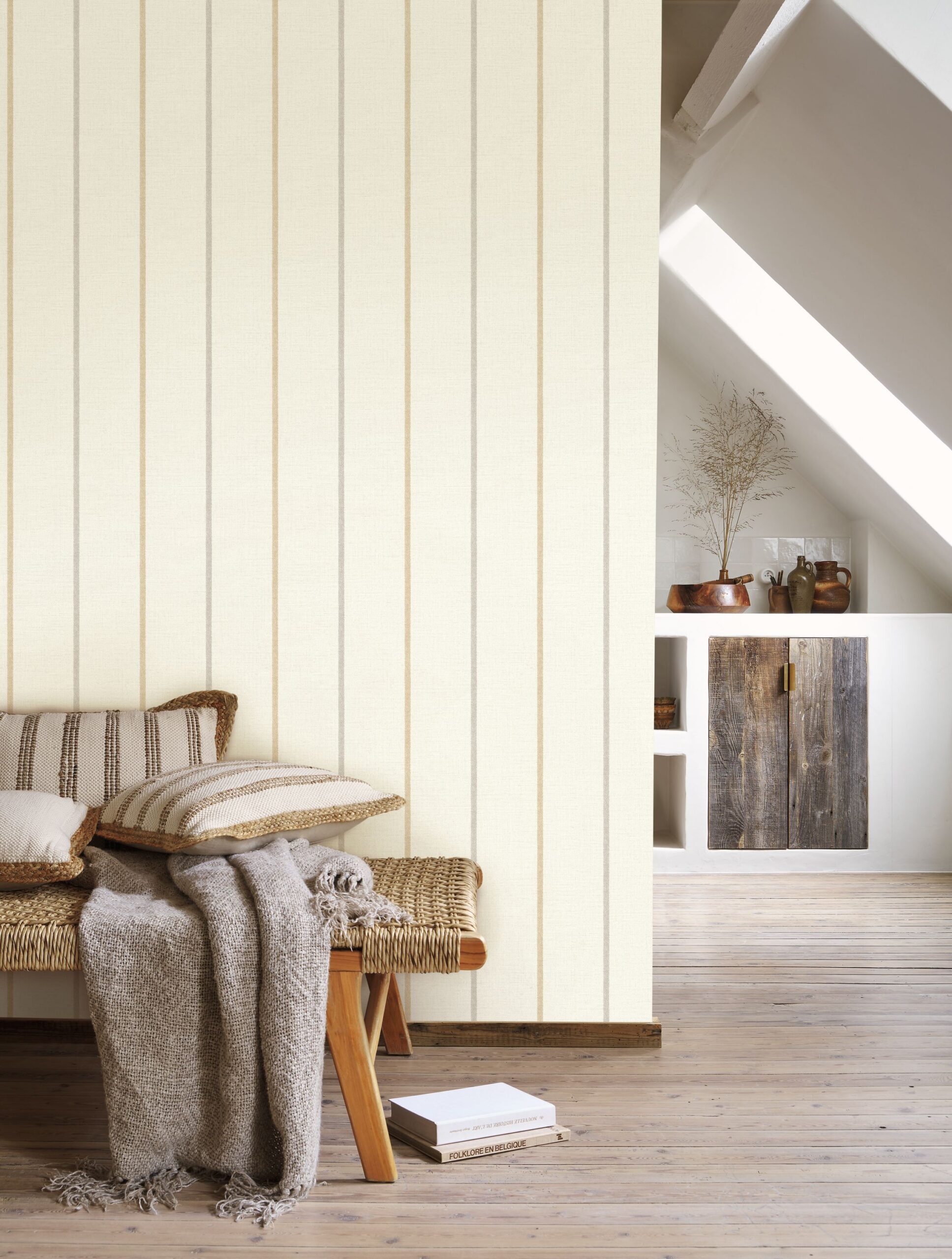 El Papel Pintado Plaid Line utiliza rayas finas para definir un espacio estructurado y moderno.